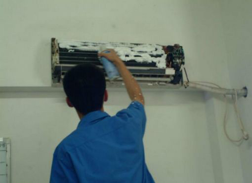 | 红原空调维修师傅给红原用户上门维修清洗空调。 |
